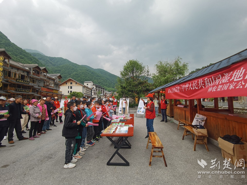 活動現(xiàn)場,圍繞宣傳橫幅,《中華人民共和國濕地保護(hù)法》《神農(nóng)架國家公園“十嚴(yán)禁”》等12塊主題宣傳展板整齊擺放。工作人員向過往群眾、學(xué)生發(fā)放資料,講解濕地保護(hù)相關(guān)知識,并接受群眾咨詢。神農(nóng)架國家公園志愿者、湖北經(jīng)濟(jì)學(xué)院教授潘淑蘭受邀對濕地知識進(jìn)行解讀,并通過有獎問答的形式讓孩子們現(xiàn)場了解什么是濕地、濕地有哪些功能、如何保護(hù)濕地等內(nèi)容。